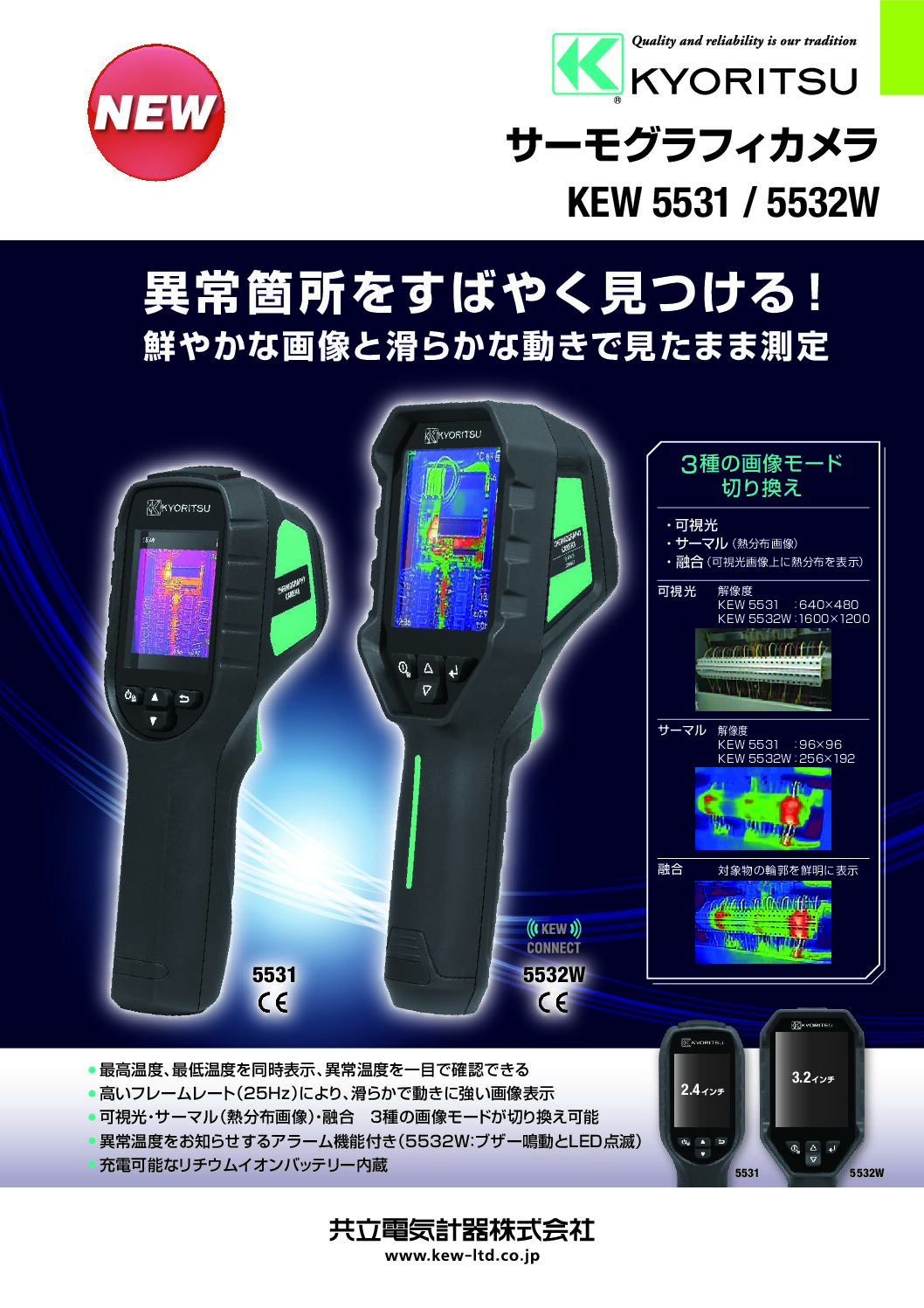 2025.11.4 サーモグラフィカメラ 共立電気計器株式会社 異常個所をすばやく見つける! 鮮やかな画像と滑らかな動きで見たまま測定 共立電気計器株式会社 サーモグラフィカメラ KEW5531/5532W LC_5531_5532W_1_0_Low_jp_P (1) 前の記事へ | 次の記事へ